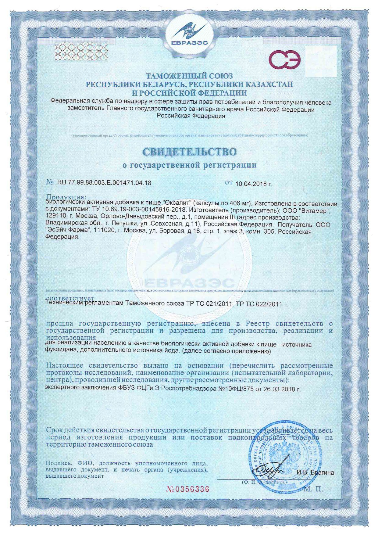 Оксалит одобрен к использованию на территории РФ и ЕАЭС